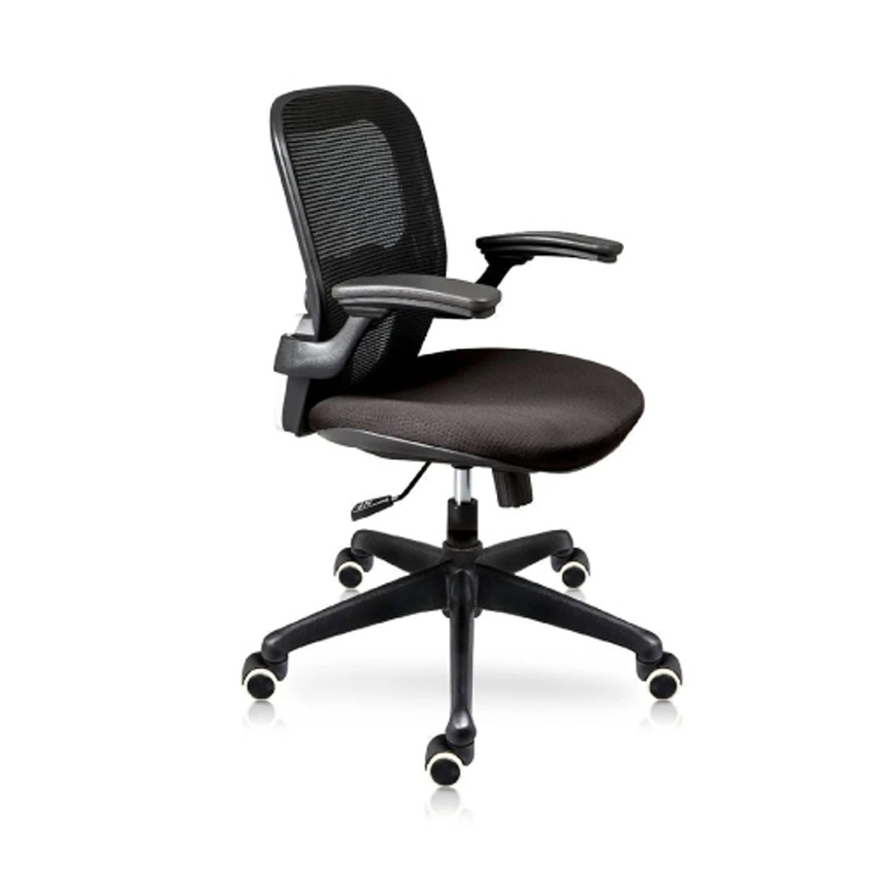 Material: Respaldo tapizado en malla con almohadilla lumbar ajustable, asiento tapizado en tela mesh, base de nylon, brazos con almohadilla de poliuretano suave. Color: Negro. Dimensiones: 58 x 53.5 x 40-49 x 87-96 cm (Frente x Fondo x Piso-Asiento x Altura Piso-Respaldo).
