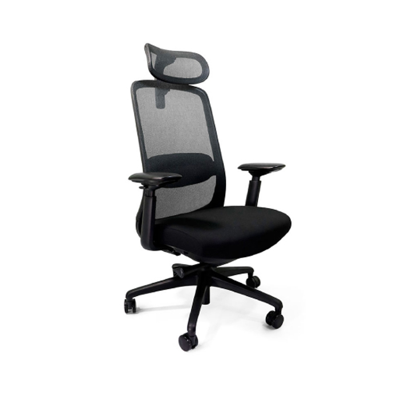 •Respaldo tapizado en malla con soporte lumbar ajustable en altura.