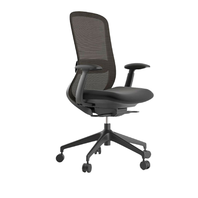 Base cromada Riñonera con ajuste de altura Asiento poliuretano tapizado Mecanismo syncro Brazo 4d con Pad suave Rodajas de nylon 60mm